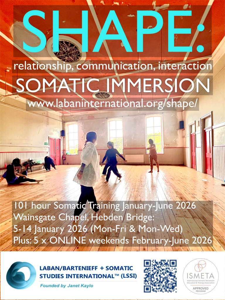 As such we are offering individual, stand-alone modules which can support or combine with other ISMETA-approved hours/ trainings to reach the ISMETA 250- or 500-hour qualification level. For example, completion of the LSSI BODY and SHAPE modules together could support meeting criteria for registration with ISMETA as an Associate Somatic Movement Professional/ Registered Somatic Dance Educator (250-hours), or Somatic Movement Therapist and/or Educator (500-hours).